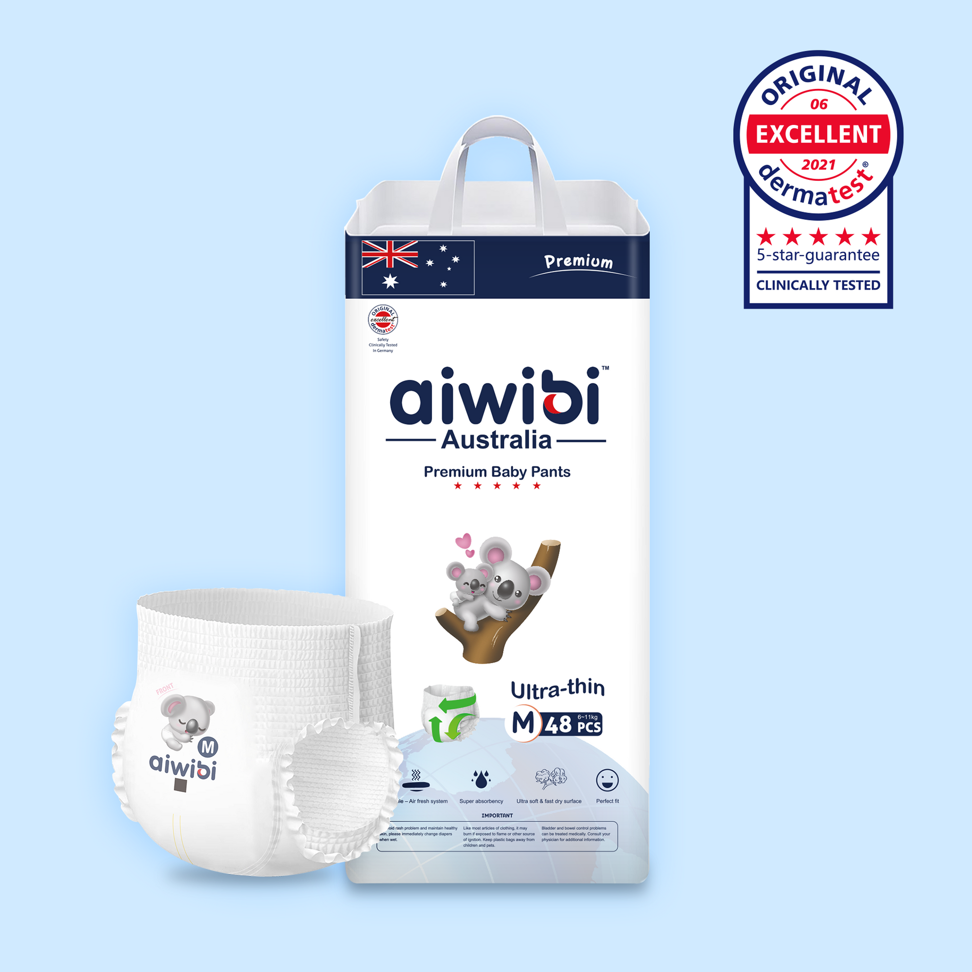 - Aiwibi nappies are certified by the German Dermatological Institute Dermatest, ensuring they are gentle on your baby's skin. We do not add any fragrances, extracts, dyes, or other harsh chemicals, making the nappies odorless and hypoallergenic.